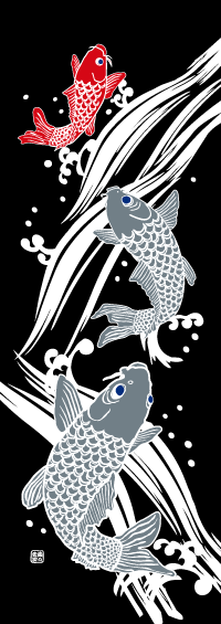 勢いよく滝にのぼる鯉は縁起ものとしても知られています。玄関に飾ると運気が良くなるとも言われています。