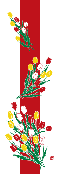 チューリップの花束をかかえて赤いジュータンを歩くような華やかな気分をイメージしました。自分へのプレゼント、そして大切な方へのプレゼントに!花言葉は、「恋の宣言」。