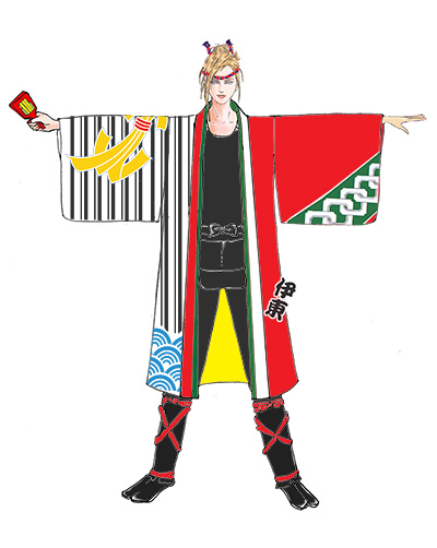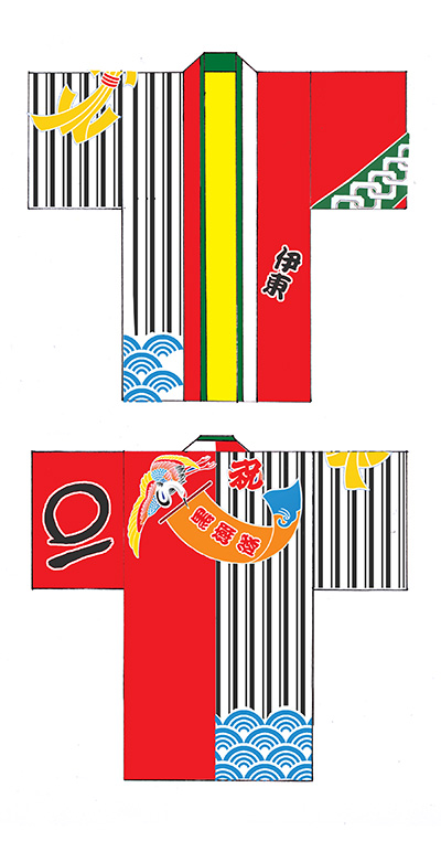 伊豆伊東の海と祭りのにぎやかさをイメージした半纏です。
