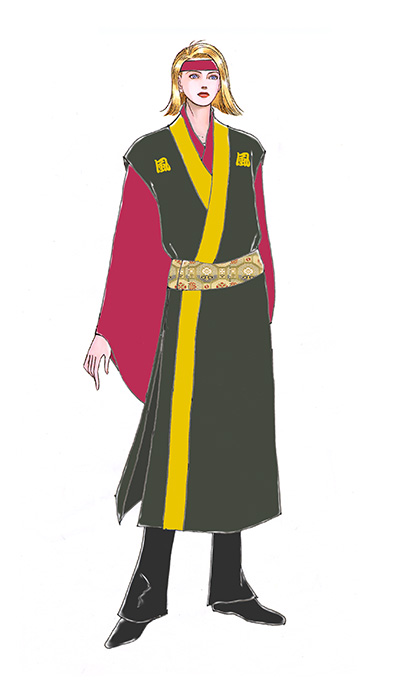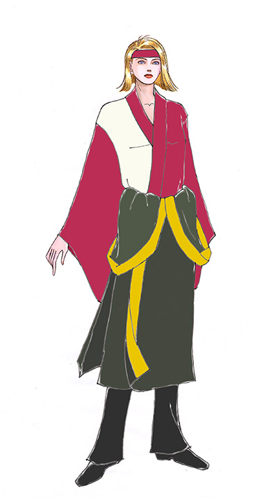 緑と渋めの辛子色の衿がきれいな配色でエンジ色の袖が華やかさをプラスしています。