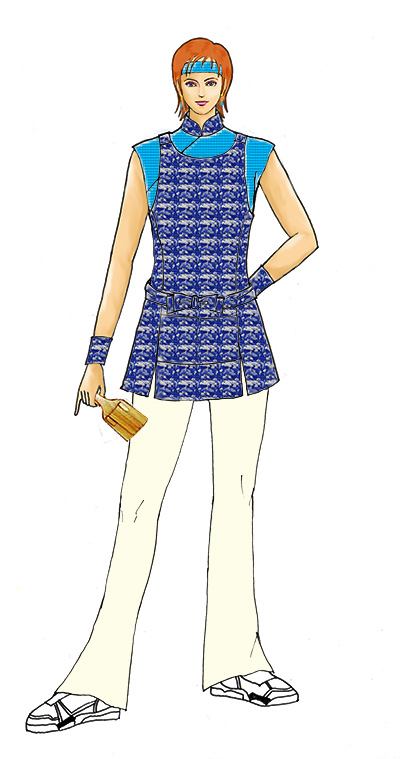 腹掛けをよさこい風に着やすくし、刺繍生地にすることによって、シンプルなデザインを 華やかにしています。